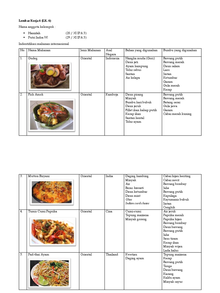 Contoh Masakan Oriental