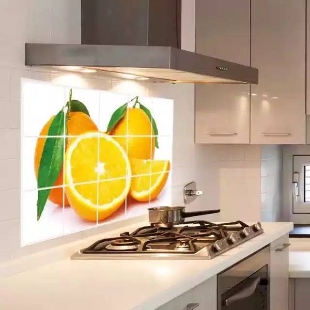Wallpaper dapur anti minyak dan panas. Dapur sering merupakan tempat paling kotor di rumah terutama bagian dinding karena kecipratan minyak atau kotor karena asap. Wallpaper Dapur Motif Pohon Hijau Dengan Buah Jeruk Lebat. 45cm x 5 meter Bahan.